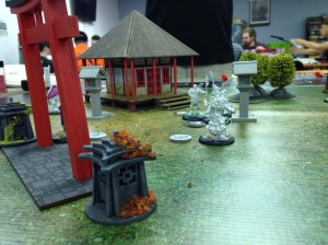 I fielded my Cult of Yurei and Gregg was playing the Ito Clan (who will be next on my purchasing list!). Gregg’s guys had lots of venomous tricks up his sleeve (his clan are snake worshipers), while I was able to raise dead allies. It’s a game where you have to think a turn or two ahead as a bad placement of a model who is out in the open and exhausted is probably not going to last too long, so planning is key!