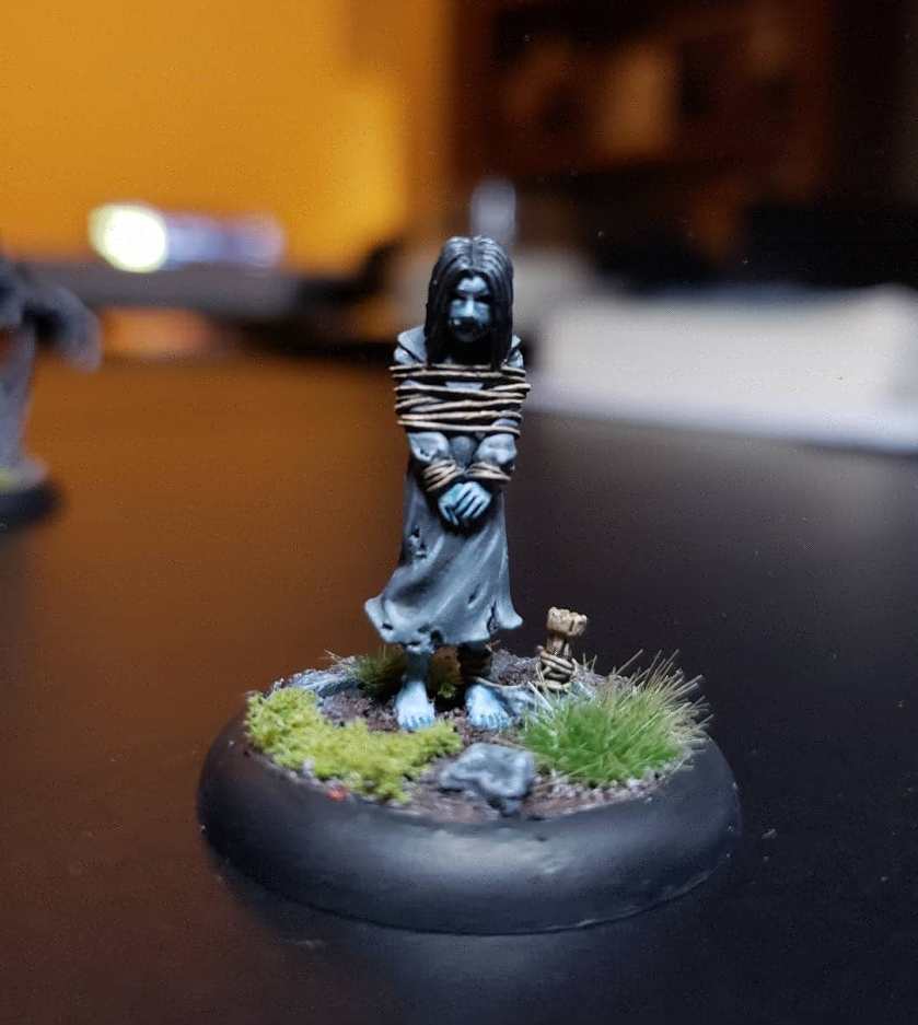 The last miniature(s) that I actually completed were for Bushido: Taka and Wrath. I really, really like Bushido, and the miniatures are exquisite. Combining my love of gaming and my interest in all things weird and paranormal, well, The Cult of Yurei seemed like a natural fit. I also really like the fact that Bushido is a skirmish level game with only a handful of miniatures (even less than Infinity), so getting a painted, playable force is actually an achievable objective. Anyhoo, the orphan Taka has quite a ‘Ringu/Grudge’ feel going on, so I painted her more ghost-like than a corporeal being, as befits the supernatural feel of The Cult.