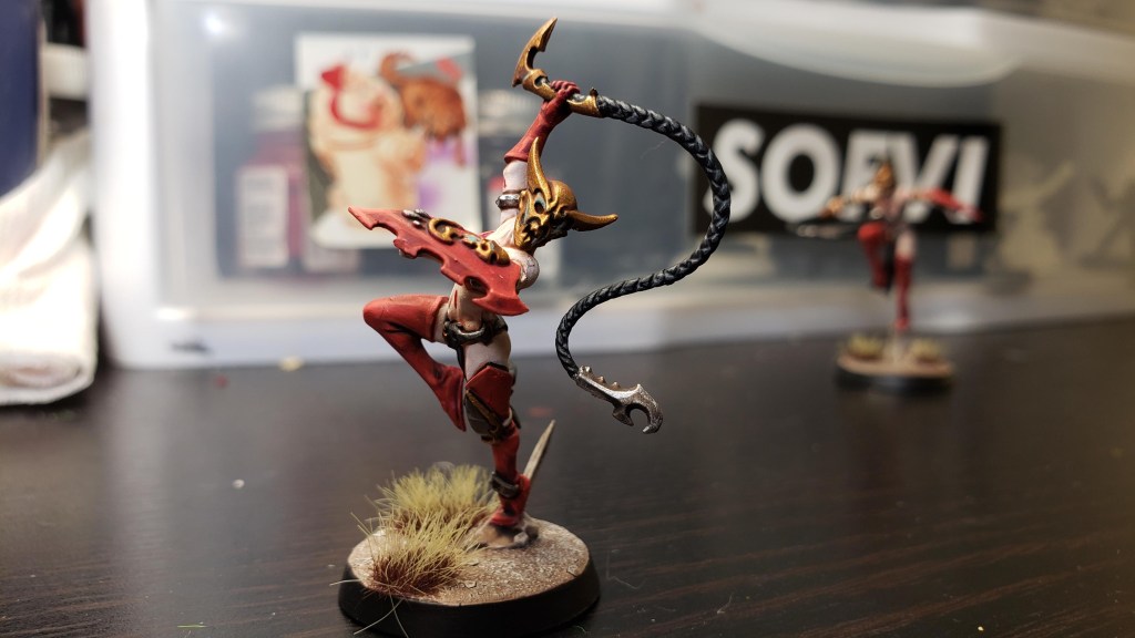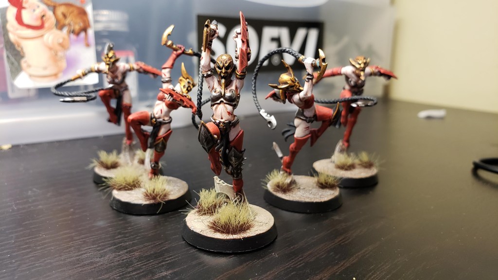 Part of the ‘shelter in hobby‘ project for me was to start working on some of the mass amounts of plastic I’ve got sitting around. As you may (or may not) remember from a few months back, I did a ‘test mini‘ from my Daughters of Khaine force. Well now I have finally completed five Sisters of Slaughter. These ladies had been sitting on my shelf half-done for several months. It made me happy to finally finish the others:
