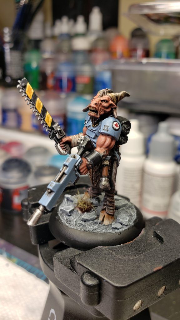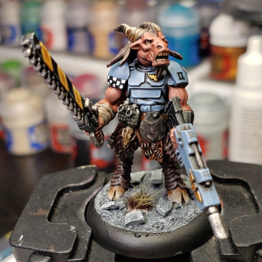 This weeks item on the painting table: Rogue Trader era Imperial Guard Beastman. Take it away Matt!
