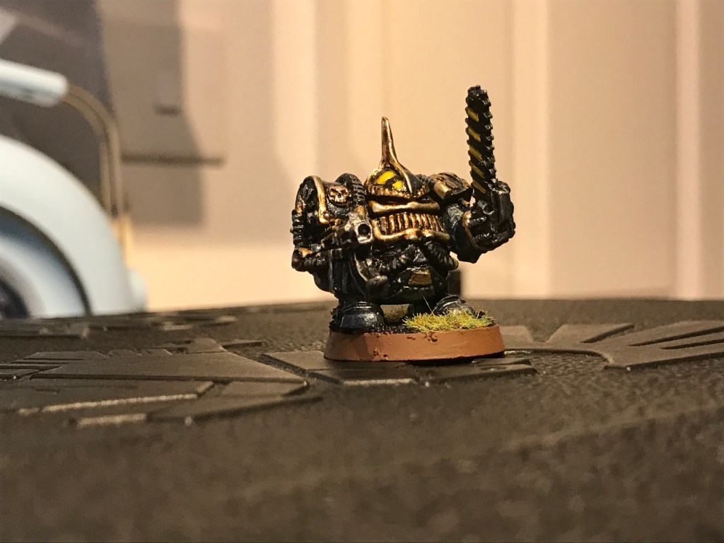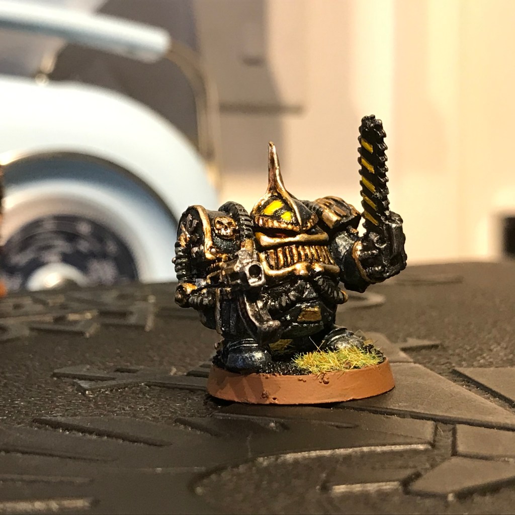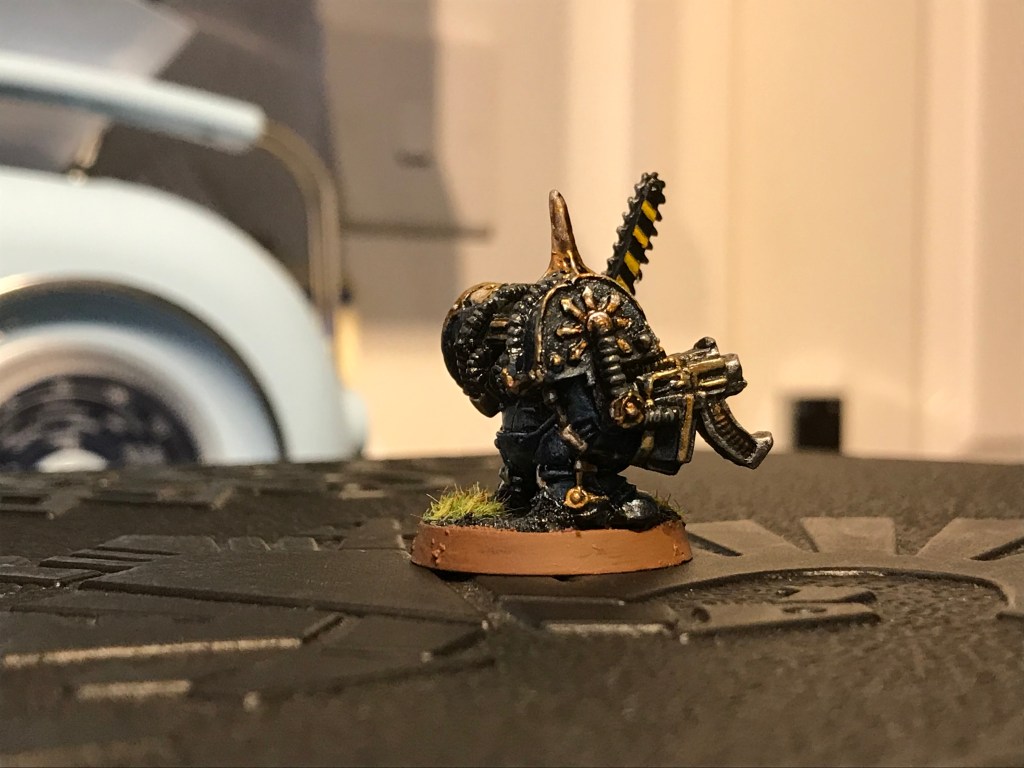 You will see that though he carries the hazard stripes of the iron warriors he doesn’t carry the iron skull motif. His skull is more a variation of the squat ancestor badge. My plan is to add my other chaos squats to this warband eventually…