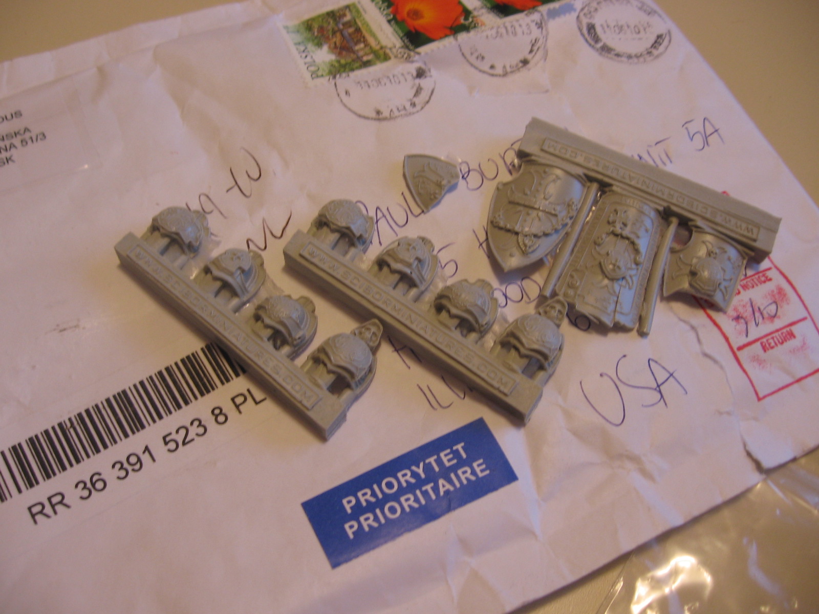 I had been meaning to purchase something for a while, and with me wanting to personalize my Black Templar forces, I figured Scibor would be the place to start. I placed an order on their snappy and rather slick looking website for some ‘Big Templar shields’ and some ‘Templar shoulder pads’ to get the ball rolling. The ordering process is nice and simple, and they accept PayPal, which is also very convenient. The prices are very reasonable, and the standard of the detail means you’re getting a pretty good deal all round. After my order was placed I got a confirmation email from them, which unfortunately I couldn’t understand a word of, due to the language barrier, but I got the general gist of it.