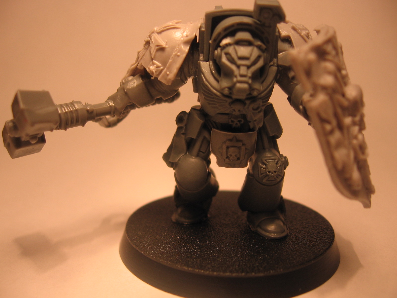 The Forge World armor pieces were pretty much a pain in the arse to work with. Some parts were bent, others ridiculously warped and at least 2 pieces had shrunk, yes shrunk. Making the best of a bad situation, I forged ahead (geddit? Forged? Forge World? never mind…) and this was the finished product: