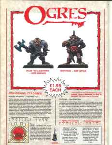 Now anyone here who’s old enough will remember that GeeDubya used to make miniatures and games for a whole plethora of other licenses. Judge Dredd? Yep! Doctor Who? Yep! Random assorted characters and beasties for roleplaying games? Well.. yep! As the risk of sounding like a totally old fart, I’ll go ahead and say that those were the “good old days” – back when a pack of 4 or 5 metal miniatures would set you back a whopping £1.95 (nearly $3?). But anyway, I’m not here to talk about prices! This issue of WD (which was typical of the magazine at the time) has a veritable mountain of stuff inside, including: