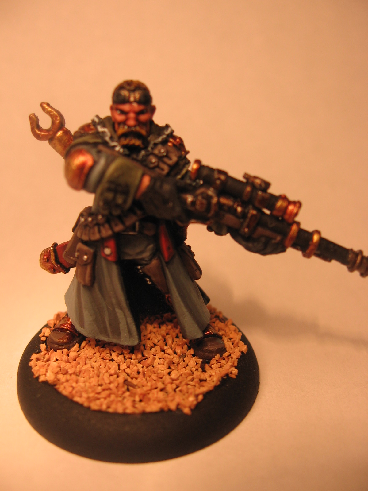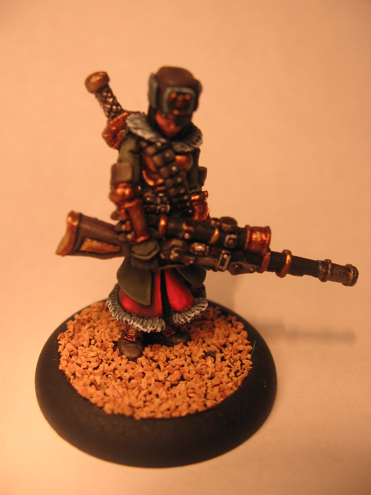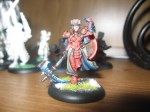 Indeed! I found more pictures I forgot I had! These are pretty small, and unfortunately don’t do the mini too much justice, but in the interest of getting my page up and running, i’ll post them anyway. I always thought it a little bizarre that a faction that dwells predominantly in the Northlands would have their color as red. Surely this would make you somewhat of an easy target in the frozen lands, no? sneak attacks? I don’t think so! Anyhoo, here, my Forward Kommander Sorscha Kratikoff is in her red uniform. I do have the Epic Sorscha which I will be doing in white.